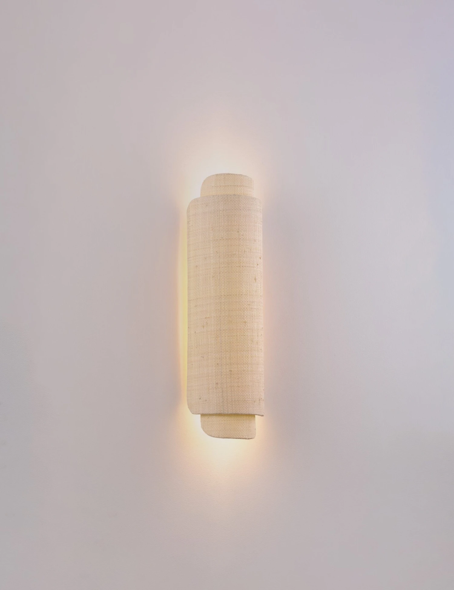 With nested shades and a natural fiber weave, the Barahona sconce adds layered texture to your walls. Warm, filtered light spills softly through its folded silhouette, making it a great fit for organic and collected interiors. Style this decorative wall sconce in pairs beside a bed or mirror for understated impact.