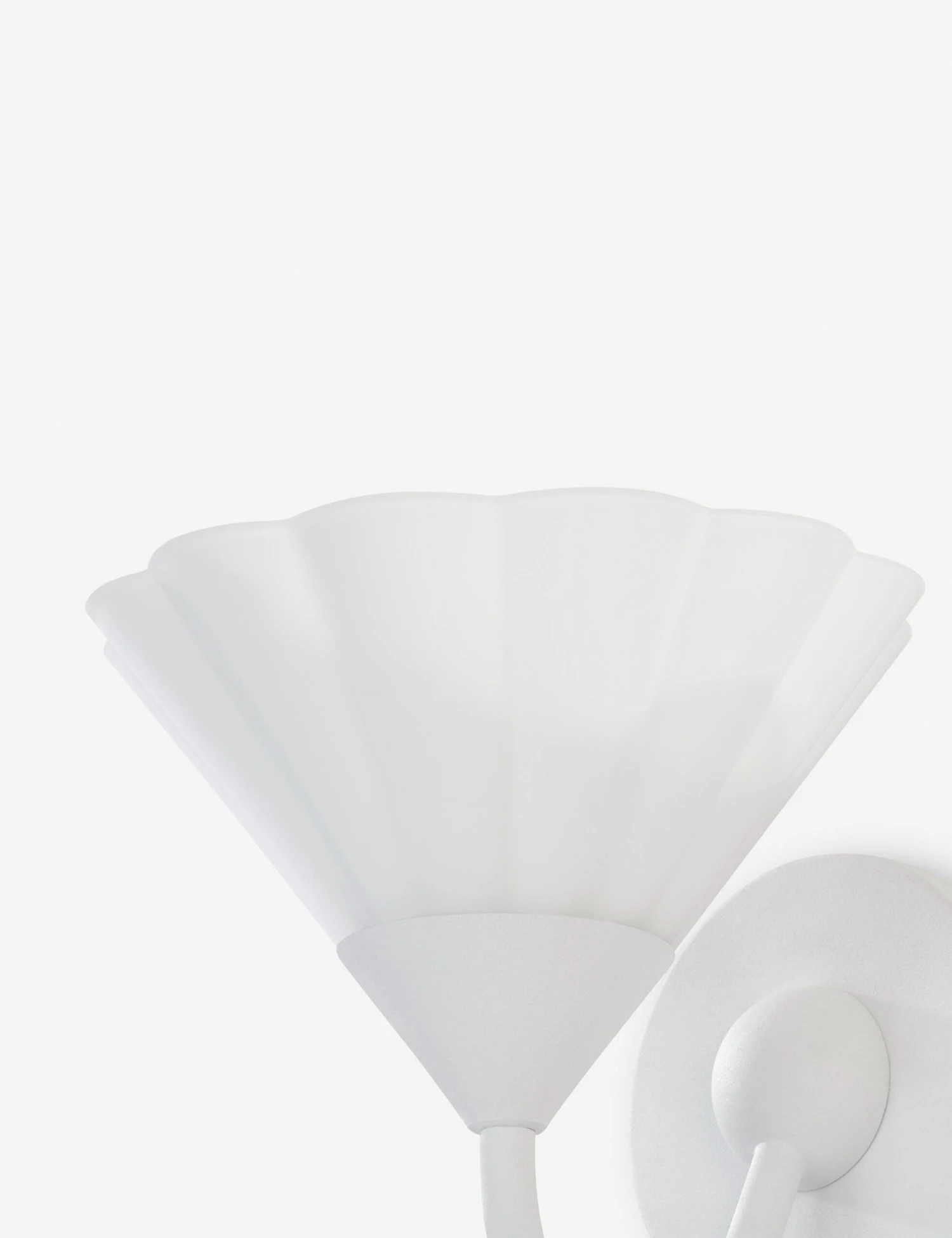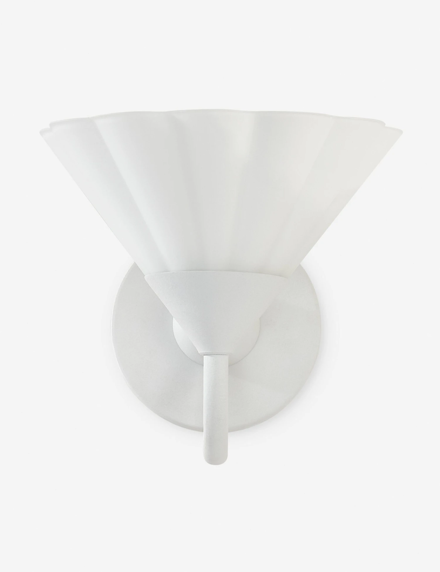 Ruffled opal glass shades create a petal-like effect in this modern sconce. It provides a generous dose of light, whether styled in a pair or bringing a standout accent to your entryway or living space. A curved arm and conical cup add a chic finishing touch to this chic sconce design.