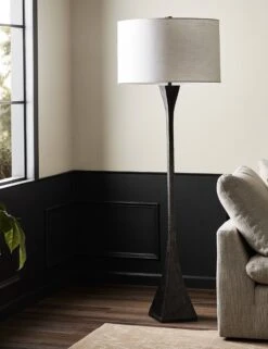 Subtle curves create the tapered silhouette of this vintage-inspired floor lamp. Pairing a forged metal base with a natural linen shade, it’s the perfect lamp for texture and impact in any setting—offering bright, diffused light with a stylish silhouette in the room.