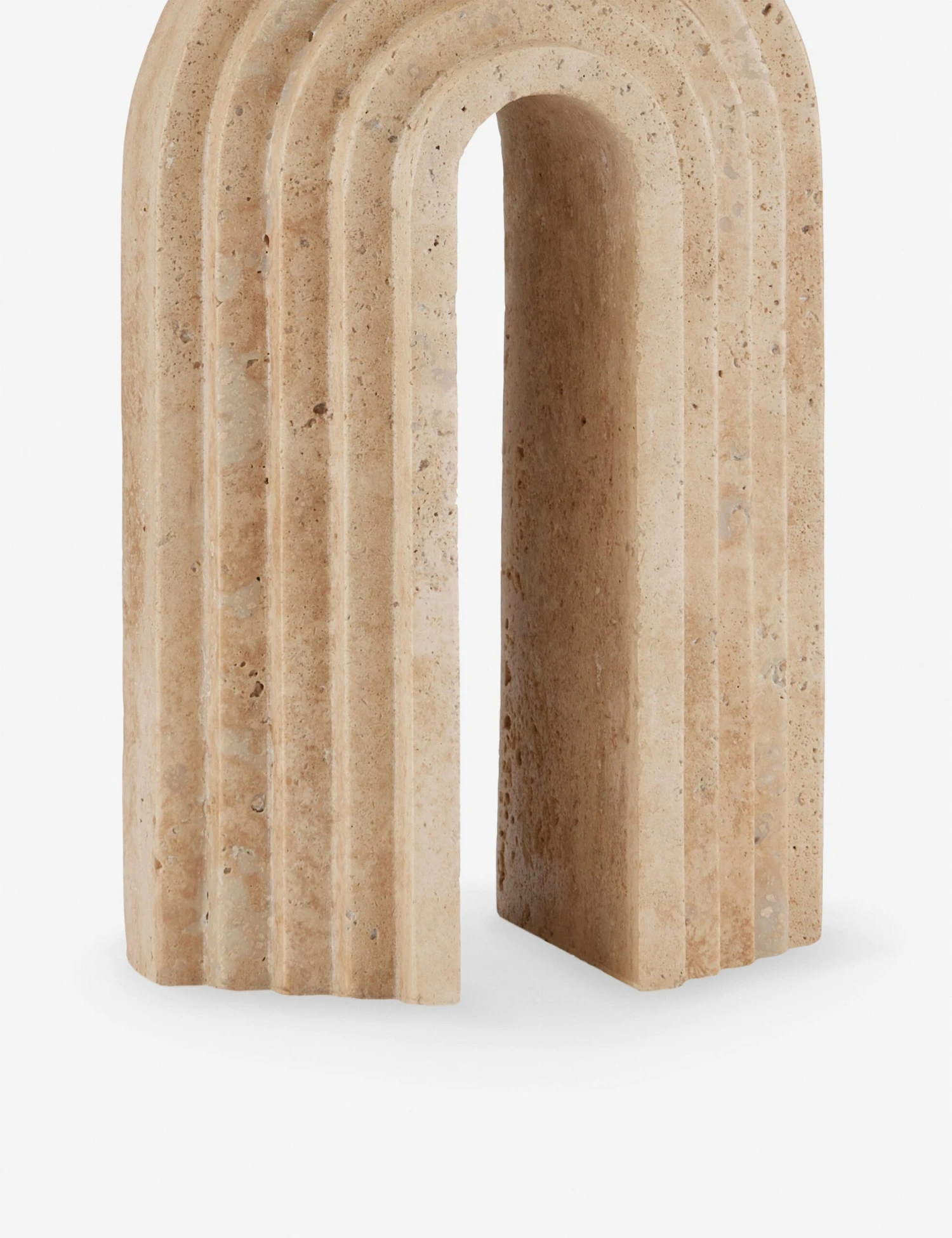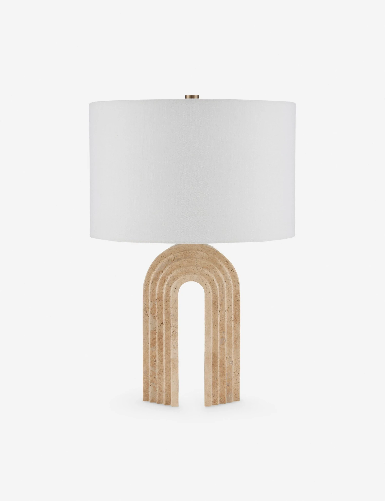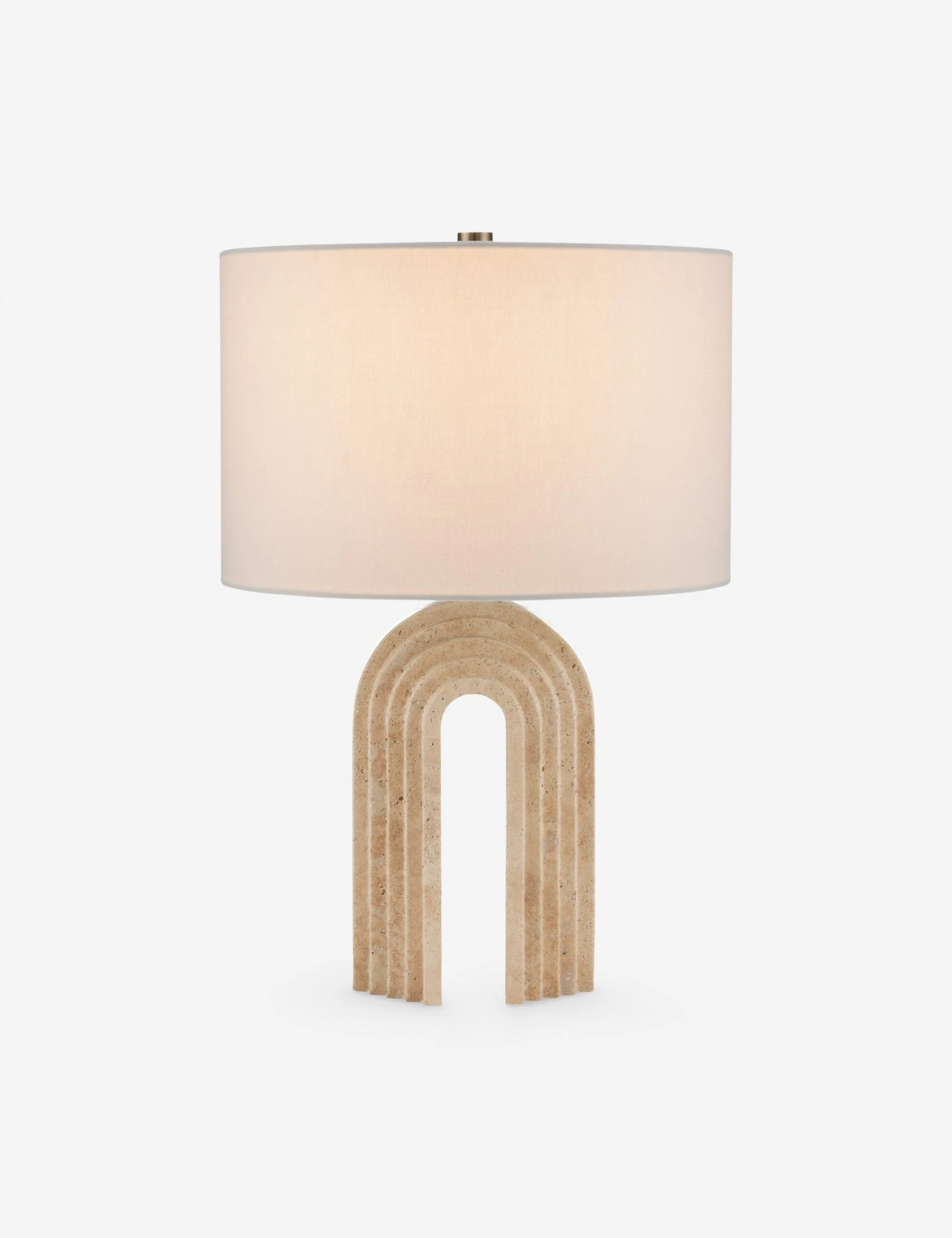 With a classic architectural feel, the beautiful travertine stone utilized in this lamp offers the perfect touch of texture. Its graceful, layered arch base adds depth and dimension to any tabletop curation. An off-white drum shade completes the look with transitional appeal.