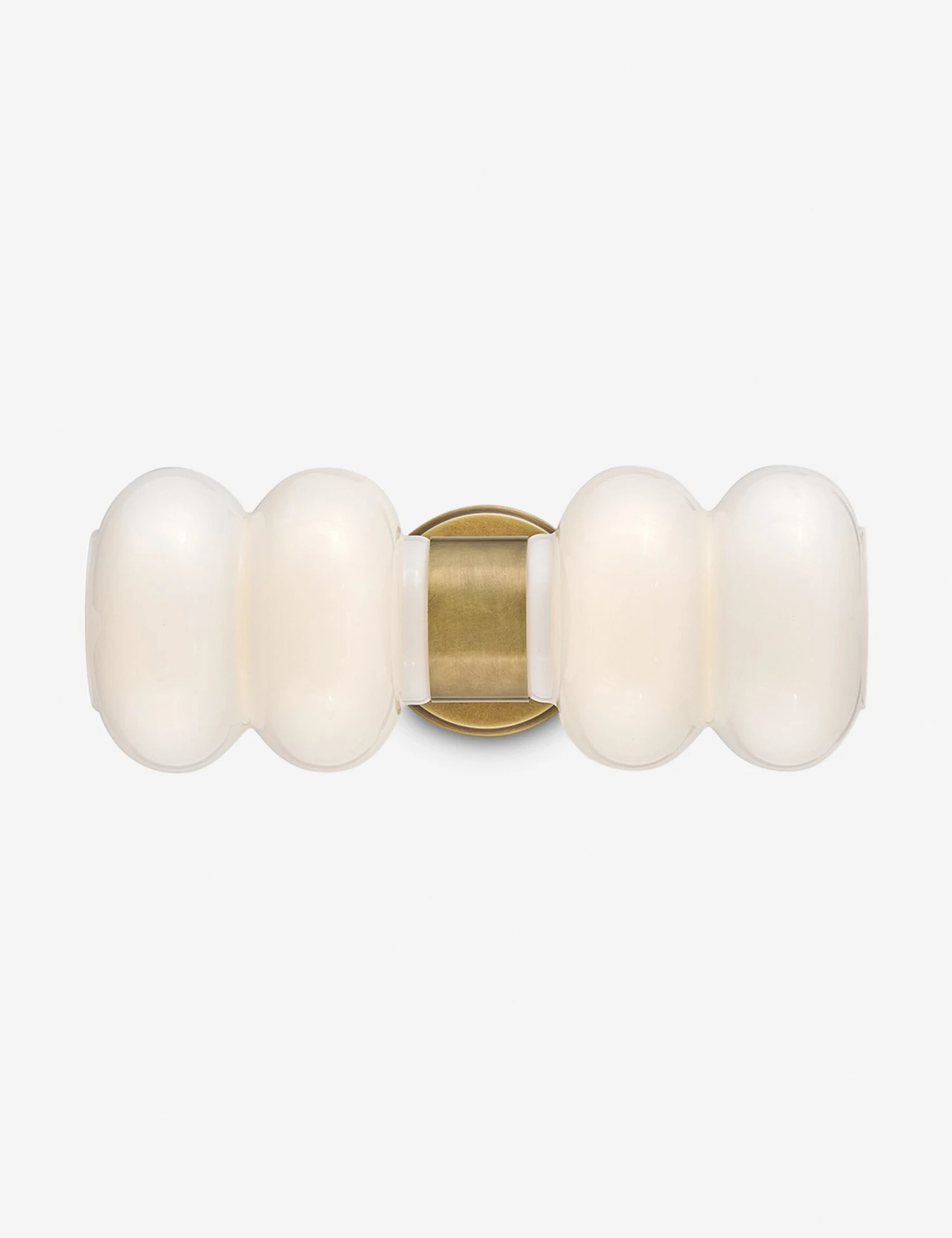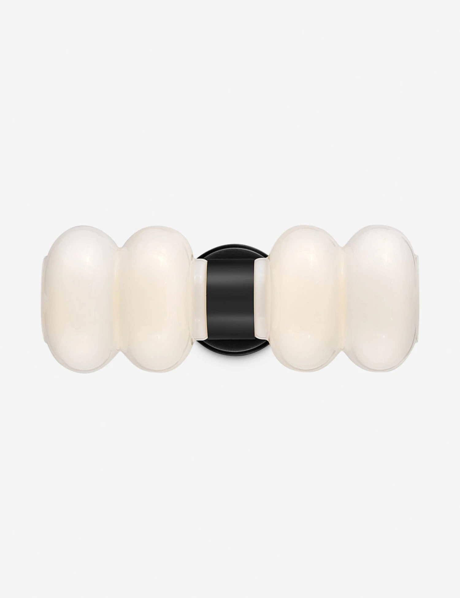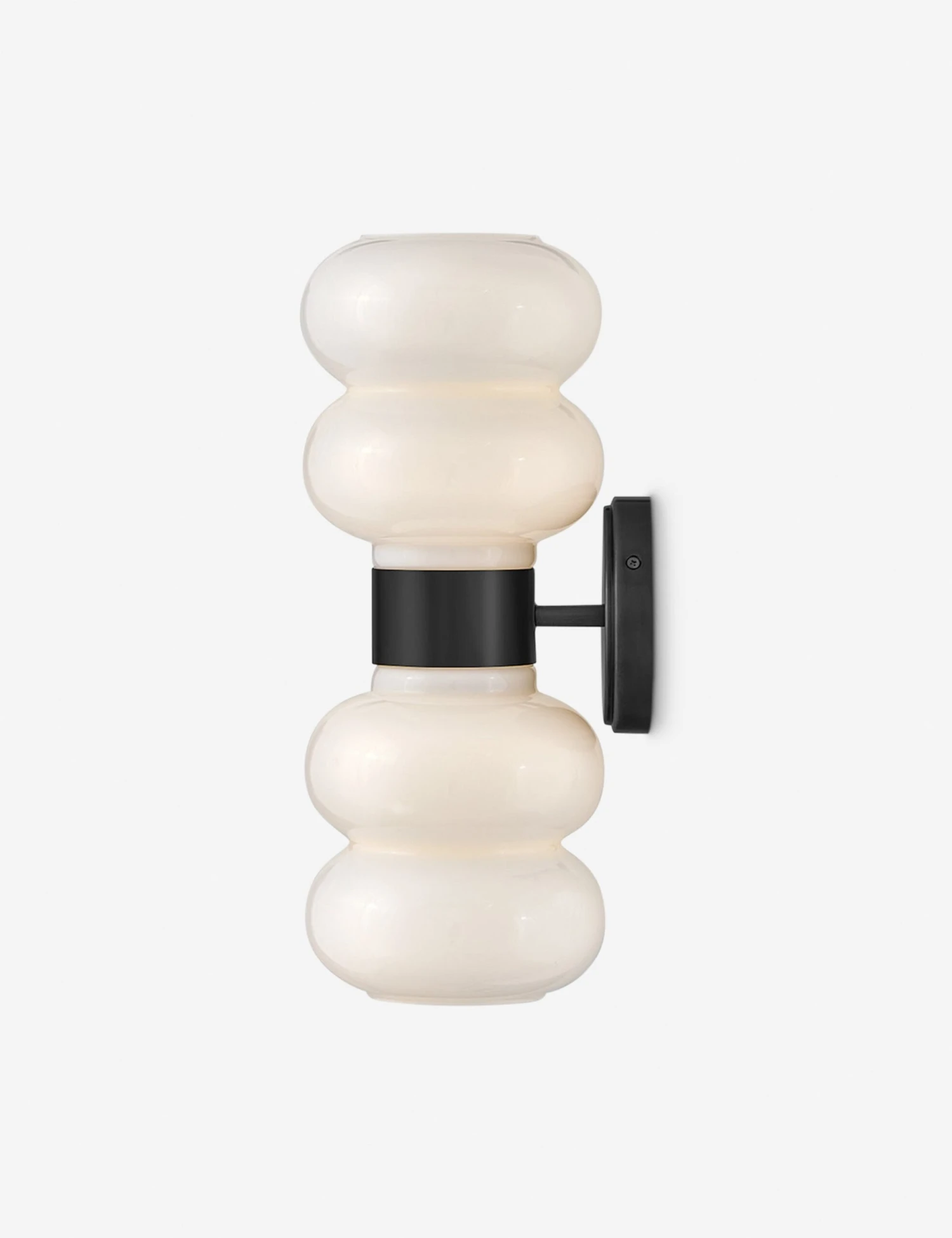 With its soft, sculptural silhouette, the Jemez sconce sets a modern tone. Its rounded opal shades bring a diffused glow, cinched at the center with a tailored cuff and backplate. You can style this wall sconce horizontally as an artful accent or use two to frame a mirror with a playful edge.