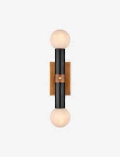 Nodding to the vintage charm of mid-century design, the Keady wall sconce is a delightful finishing touch flanking a cozy sitting area or entryway. Its gentle conical shade is perforated at the base, adding visual interest and dimension. The sconce’s patina brass finish hardware adds warmth to a contrasting shade, perfect for an artfully refined edit.