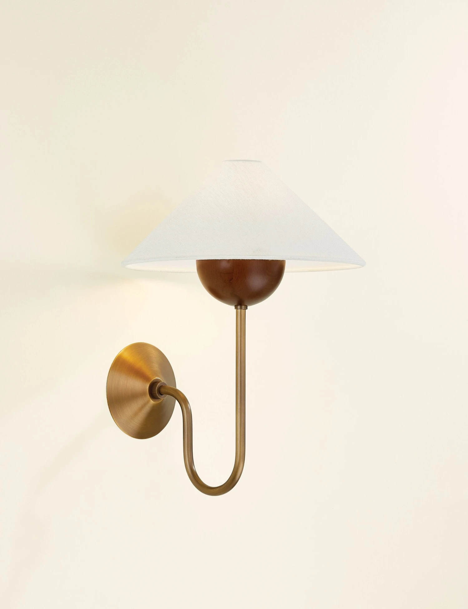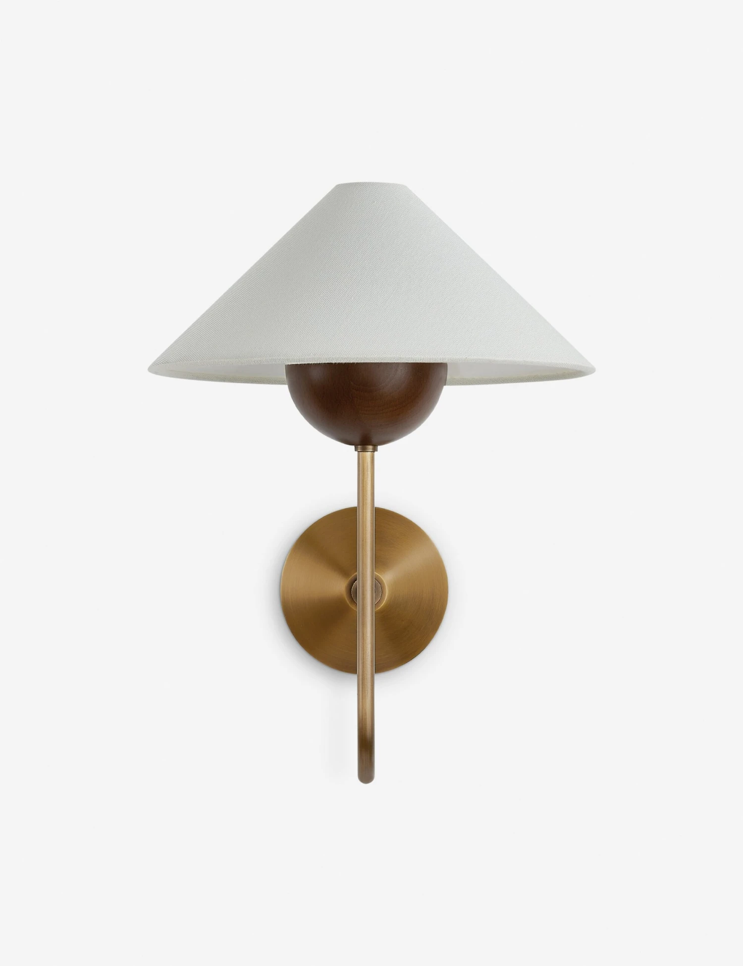 Leano brings together earthy materials in a refined silhouette. A walnut wood accent and crisp metal arm are topped with a tapered linen shade, creating soft contrasts in texture and form. Use this wall sconce to style warm, modern lighting beside a bed, mirror, or entryway.