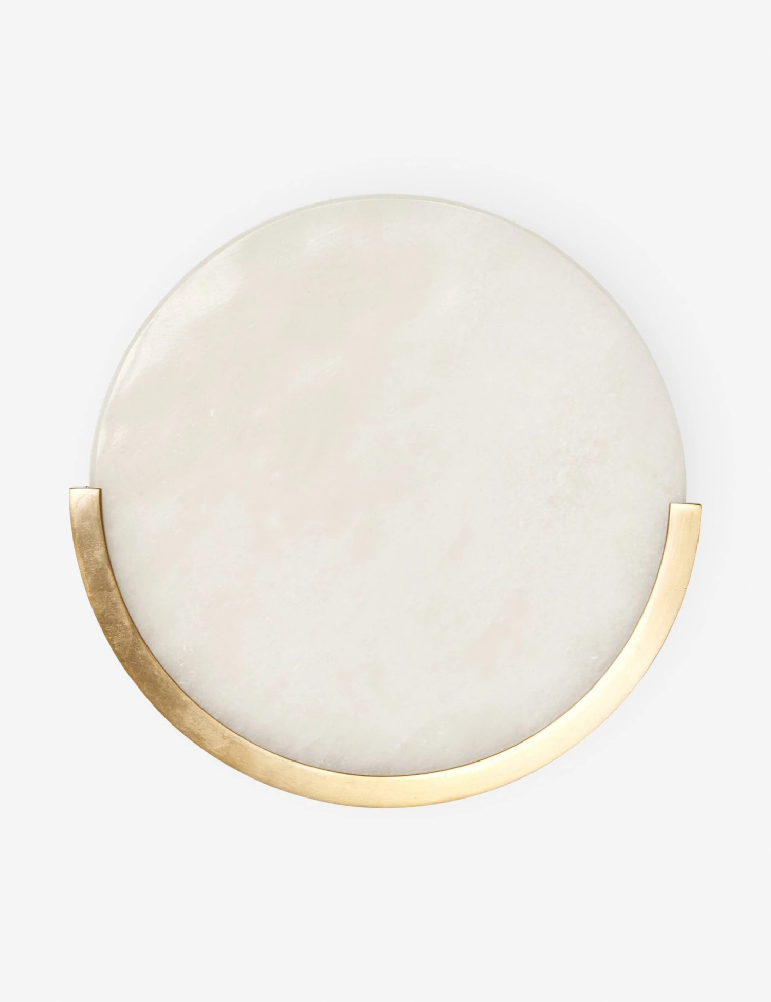 Evoking the soft light of the moon, this alabaster sconce is a sculptural art piece that doubles as lighting. A prominent cradle adds warmth and definition with a brushed brass finish, holding the alabaster disk that defines this luxurious wall sconce. Stunning in a refined entryway or offering ambient illumination in your bedroom or lounge.