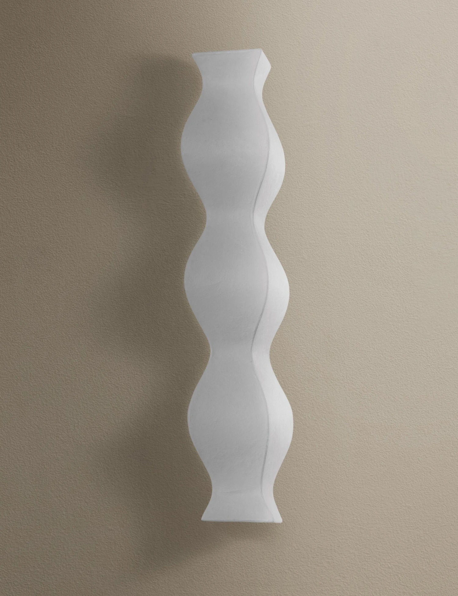 Niola plays with geometry in a softly sculptural design. Its wave-like form features a paper shade over LED lights, casting a bright, filtered glow. Style this modern wall sconce to bring shape and rhythm to a hallway or home office.