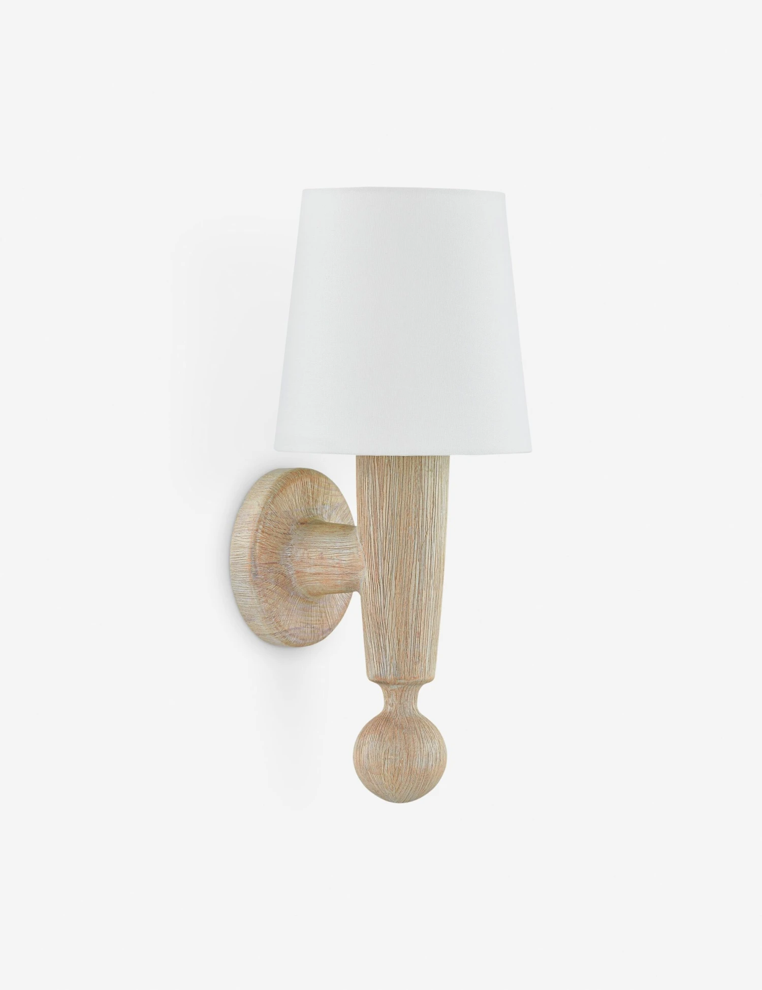 The Norelle sconce brings a touch of wood to your walls. The classic torchiere silhouette features a solid wood arm with a beautiful natural grain and textured linen shade for transitional appeal. We love this sconce as a single accent light or styled in pairs to flank a doorway, mirror, or favorite piece of art.