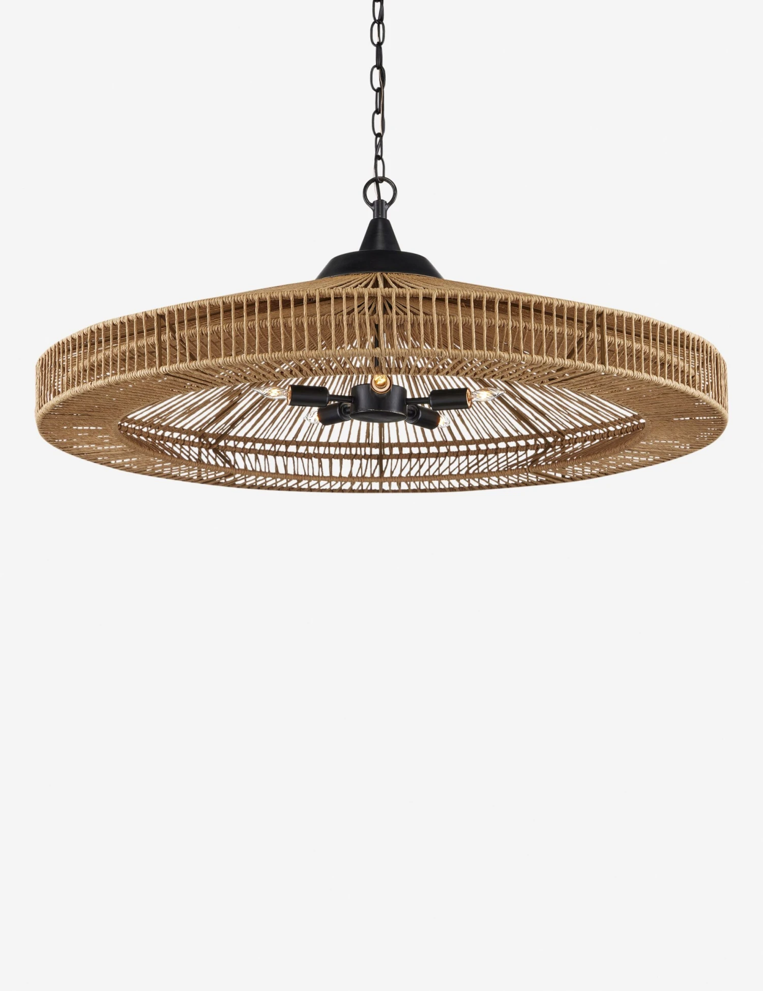 The Oleander chandelier offers a raw, textural quality elevated with an intricate artisanal design. The woven frame creates visual intrigue overhead, fashioning this large chandelier for statement appeal. The nested shade diffuses the light for warmth and ambiance in the room.