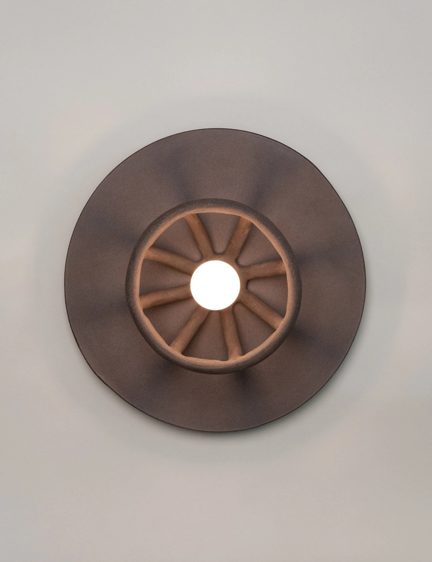 SIN is a Brooklyn-based brand that offers beautiful, handmade pieces designed with intention. Evoking the rays of light that radiate from the sun, this sconce light’s handcrafted ceramic coils cast a dramatic sunburst pattern. The large backplate grounds the design with an earthy warmth.