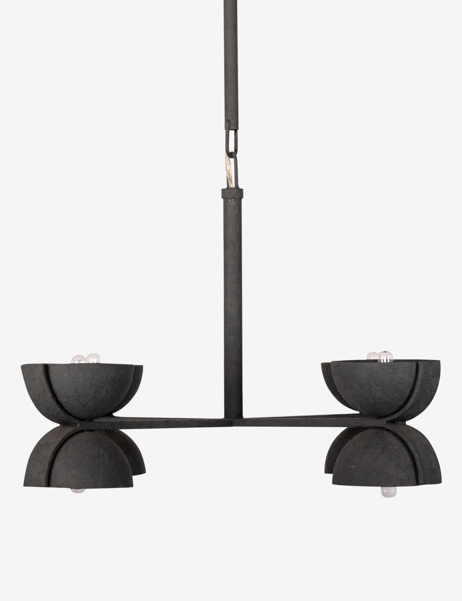 The Ricardo lighting collection brings form to texture with a hand-molded look and plaster-like finish. This chandelier offers brilliant illumination with eight dome shades arranged to pour light up and down. Create a timeless statement over your dining or coffee table with this unique chandelier light.
