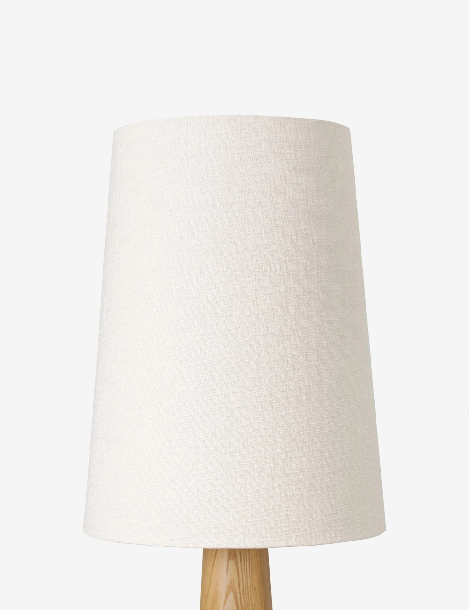 Modern minimal meets traditional. A tapered wood base and boucle linen shade bring a soft structure to this floor lamp. Style it in a corner or lounge area as a warm reading light with a designer edge.