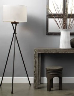 The Waker floor lamp offers a fresh take on classic tripod silhouettes. Three slender legs meet at a central ring beneath a crisp drum shade, finished with chain pulls for a chic, functional detail. Place this lamp beside a reading chair or in a curated corner to bring warmth and height to the room.